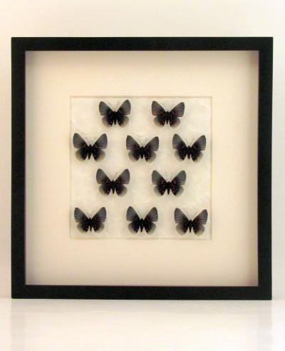 The collection box of  Lyropterx Appolonia from Peru displays the beautiful underside of this small butterfly.